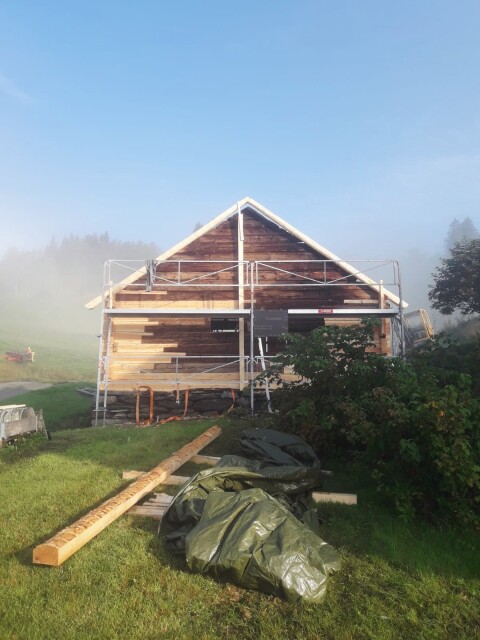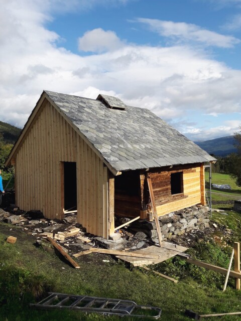 Eldhuset gjenreises etter å ha blitt restaurert på Fammestad.