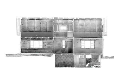 Lengdesnitt av lemstova, utarbeidet fra 3D-skanning av huset.