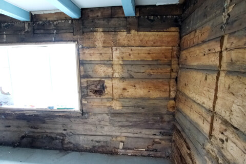 På tømmeret kan man tydelig se at lemstoven er bygget i omganger, over lengere tid.